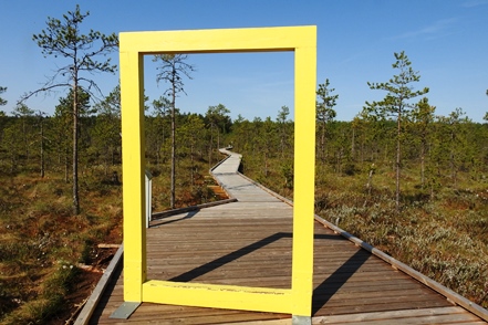 Die Wanderung auf dem Bohlenweg durch das Valgesoo-Moor am nächsten Morgen ist dafür dann ganz nett. Dem gelben National Geographic Rahmen werden wir im weiteren Verlauf der Reise immer wieder begegnen.