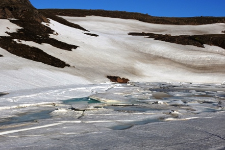 Nach einem Großeinkauf in Egilsstađir wollen für die letzten Tage auf Island zumindest ein wenig ins Hochland fahren. Zwar sind die F-Straßen noch alle gesperrt, aber die 910 zum Kárahnjúkar Kraftwerk ist komplett asphaltiert und fahrbar.
