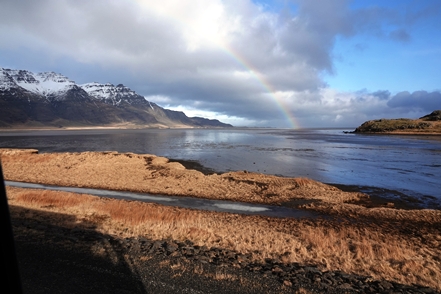 Später machen wir Mittagspause auf einem Rastplatz, wo uns der wieder einsetzende Regen bei gleichzeitigem Sonnenschein einen schönen Regenbogen beschert.