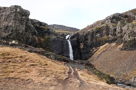 Eine holprige Piste bringt uns zum Ausgangspunkt einer kurzen Wanderung zum Wasserfall Skutafoss. Aber wir sind froh, als wir wieder zurück beim MAN sind und so aus dem Wind kommen.