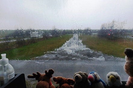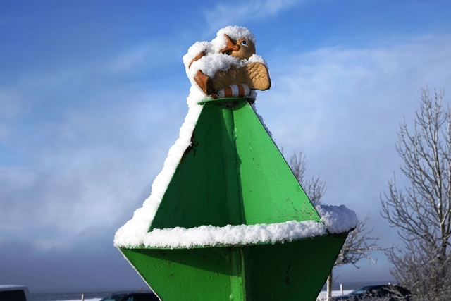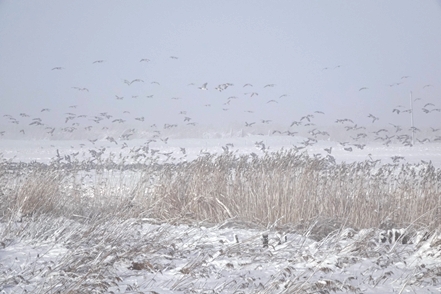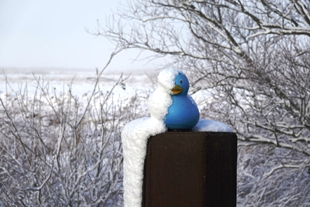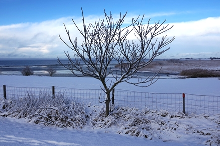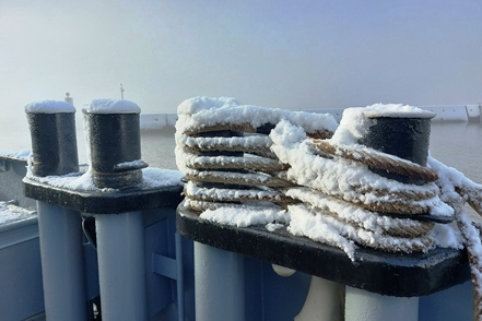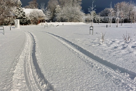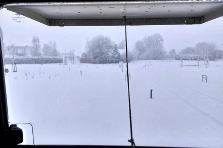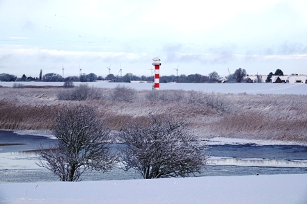 Weiter geht die Fahrt auf schlecht oder kaum geräumten Straßen nach Krummendeich. Der Wohnmobil-Stellplatz ist vollkommen zugeschneit. Gut, dass wir hier vor kurzem waren und von daher wissen, wo wir uns hinstellen können. Wir nehmen deshalb auch den gleichen Platz wie letztes Mal, auch wenn das bedeutet, dass wir etwas weiter durch den Schnee fahren müssen. Bald zieht es sich wieder zu und beginnt erneut heftig zu schneien.