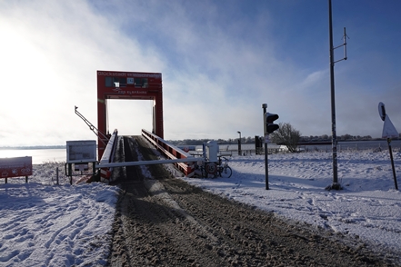 An der Elbfähre müssen wir diesmal länger warten als auf dem Hinweg. Am Deich herrscht Hochbetrieb. Unzählige Rodler nutzen die Gelegenheit zu kurzen Abfahrten. In Ermangelung von Hügeln und Bergen muss man nur erfinderisch sein.