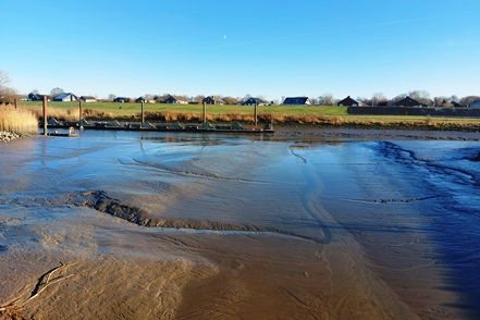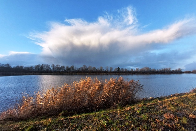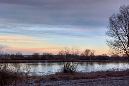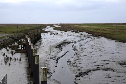 Das Naturschutzgebiet Kronenloch ist am nächsten Morgen nach einen kurzen Einkaufsstopp schnell erreicht. Das binnendeichs gelegene Salzwassergebiet mit Gezeiteneinfluss ist ein bedeutendes Vogelschutzreservat. Es gibt einen Beobachtungsturm, von dem aus im Moment aber nichts zu sehen ist. So fahren wir zunächst zum Wohnmobilstellplatz, der im Winter eigentlich geschlossen ist. Trotzdem wird es anscheinend geduldet, dass autarke Camper hier bleiben können. Die wenigen Camper verteilen sich gut auf dem Areal.