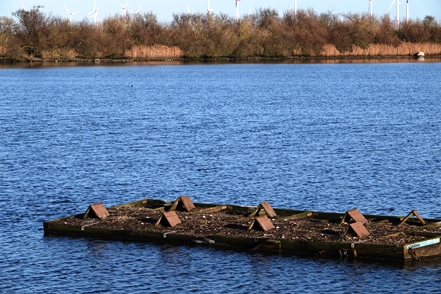 Von hier aus laufen wir zunächst ein wenig über den Deich, aber es windet ganz schön, und so wenden wir uns lieber dem Gebiet landeinwärts zu. Zunächst geht es zur Schutzstation Wattenmeer. Fast direkt neben der (leider geschlossenen) Nationalparkstation Wattwurm befindet sich eine Beobachtungshütte. Die Brutflöße für die Flussseeschwalben sind nun natürlich verwaist. Ein paar Enten und etliche Blässhühner lassen sich blicken, außerdem zahlreiche Singschwäne. Abends dann ein leckerer Auflauf – bei kaltem Wetter genau das Richtige.