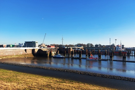 Bald sind wir in Brunsbüttel angekommen. Hier schauen wir uns zunächst kurz im Industriegebiet etwas um, bevor wir auf den Wohnmobilstellplatz im Zentrum fahren. Trotz einer Großbaustelle ist der Platz nutzbar und aufgrund der Arbeiten dazu kostenlos. Von hier aus ist es weit nicht zu guten Beobachtungspunkten für große Schiffe, die wir durch eine Schrebergartenanlage erreichen. Die Aussichtsplattform mit Blick auf die Schleusenanlage am Eingang zum Nord-Ostsee-Kanal überzeugt uns nicht wirklich. Man schaut durch einen schmutzige Scheibe auf die Anlage und steht im dichten Gedränge, da natürlich bedingt durch Feiertage und dazu noch Sonntag viele Menschen das gute Wetter für Spaziergänge nutzen. Da gefällt uns der Blick von der Promenade mit dem Kaiser-Wilhelm-Denkmal deutlich besser. Noch besser ist die Aussicht von Mole 4 aus.