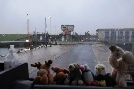 Im Morgennebel erreichen wir den Fährhafen Glückstadt in Schleswig-Holstein und fahren zunächst ans Störsperrwerk um zu frühstücken. Das Wetter ist gut, die Sonne löst den Nebel bald auf.
