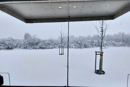 Bevor wir am nächsten Morgen aufbrechen können, ist erst einmal längeres Schneeräumen angesagt. Ein gutes Stück Landstraße, zumeist kaum geräumt, ist noch zu bewältigen. Dann fahren wir auf die deutlich besser geräumte Autobahn, wenn dies auch einen Umweg bedeutet. Aber sicher ist sicher. Am frühen Nachmittag treffen wir bei wieder einsetzendem heftigen Schneefall zu Hause ein. Die nächsten Tage hier zu Hause zeigen uns dann, dass wir die richtige Entscheidung getroffen haben. Wir sind total eingeschneit. Wie gut, dass wir ausreichend Vorräte haben und nicht darauf angewiesen sind einzukaufen.