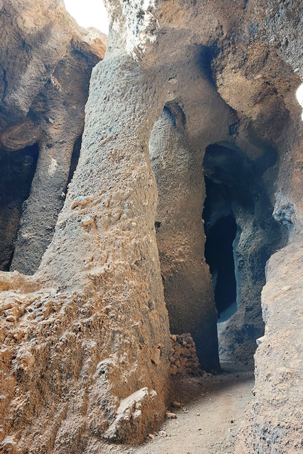 Nicht weit entfernt zwischen Teguise und Guatiza wartet ein weiteres Highlight auf uns. In den Karten findet sich die Bezeichnung „Stratified City“. In Wirklichkeit heißt es aber Antigua Rofera de Teseguite. Hier wurde früher Picon (Vulkanasche) abgebaut. Ergebnis dieser Abbautätigkeiten und Erosion ist eine Landschaft mit bizarren Felsformationen, kleinen Höhlen. Leider gehen auch hier Besucher nicht unbedingt achtsam damit um. Einritzungen auf glatten Flächen sind zumindest vereinzelt zu finden. Und die Höhlen werden gerne als natürliche Toilettenhäuschen genutzt. Ekelhaft! Das muss doch wirklich nicht sein.