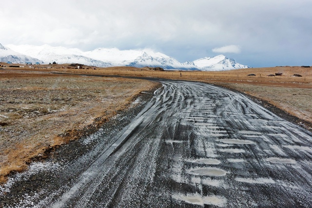 Bald danach machen wir uns auf den Weg in südliche Richtung. Auch hier sind wir auf glatten Straßen unterwegs. Wir durchfahren eine traumhafte Landschaft, und das bei Superwetter!