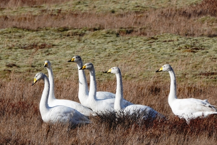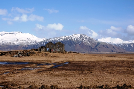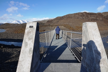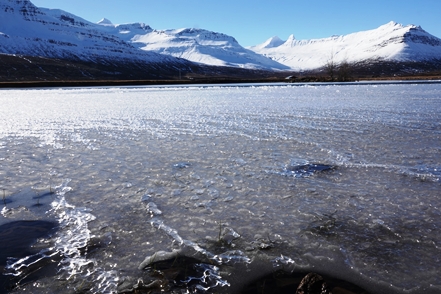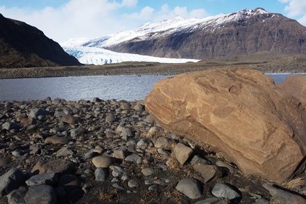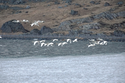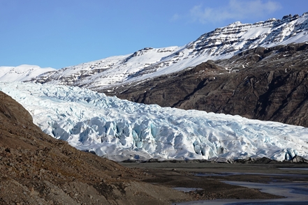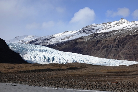 Schnee liegt nur noch auf den Bergen, die Singschwäne sind dabei, ihre Reviere zu besetzen. Wir biegen ab auf eine Schlagloch- und Wellblechpiste, die zwar etwas weich, aber gut machbar ist, um zum Flaajökull-Gletscher zu gelangen. Das Wetter ist eigentlich fantastisch, wenn denn nur der Wind nicht wäre. Dieser nimmt immer weiter zu, für unsere Wanderung müssen wir wohl auf morgen warten.