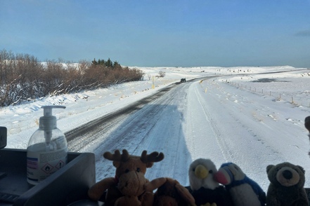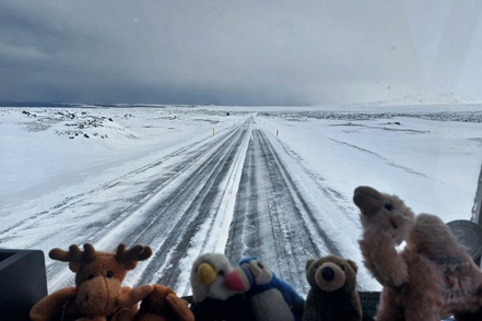 Die Straßen, die wir anschließend eigentlich in Richtung Westfjorde fahren wollen, sind weiterhin teils geschlossen bzw. werden als nicht gut fahrbar eingestuft. Da ändern wir halt wieder einmal unsere Pläne und machen uns auf glatten, weil vereisten Straßen auf den Weg zu den Hraunfossar.