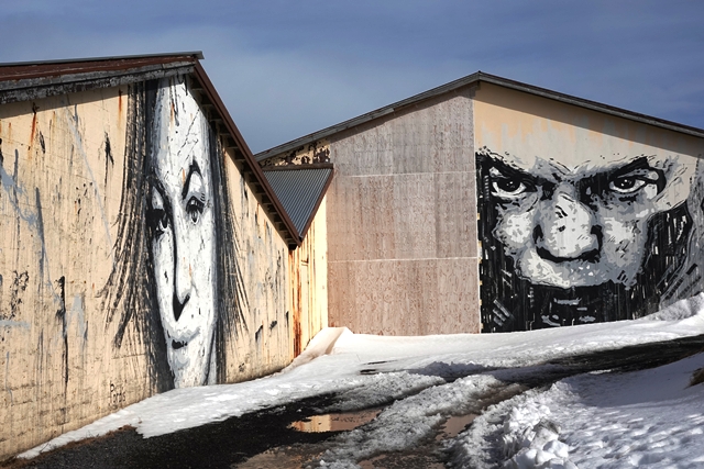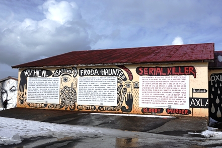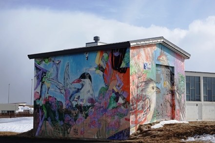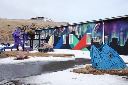 Aber eigentlich stoppen wir hier für die zahlreichen, teils riesigen künstlerischen Murales, die dem Ort den Beinamen „Street Art Capital of Iceland“ eingebracht haben.
