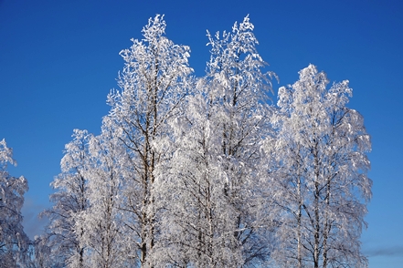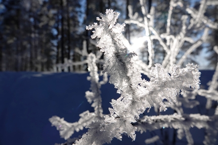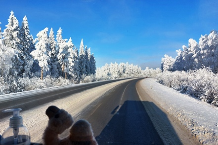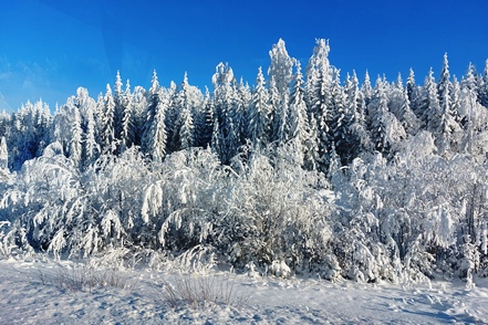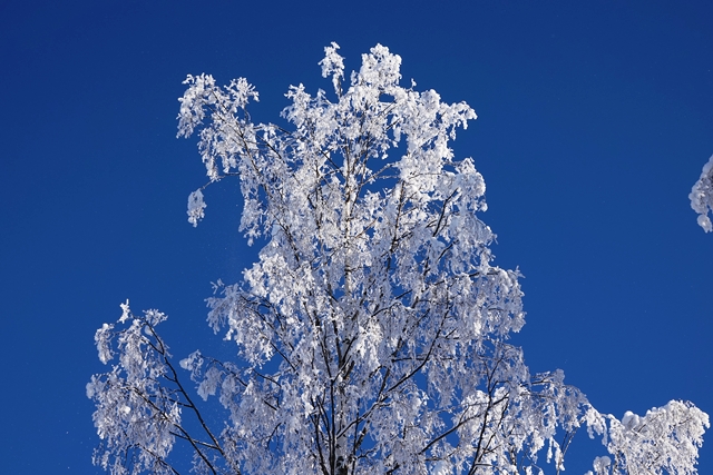 Die Landschaft begeistert uns, die vereisten Bäume bieten bei nun klarem Wetter einen fantastischen Anblick.