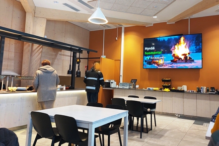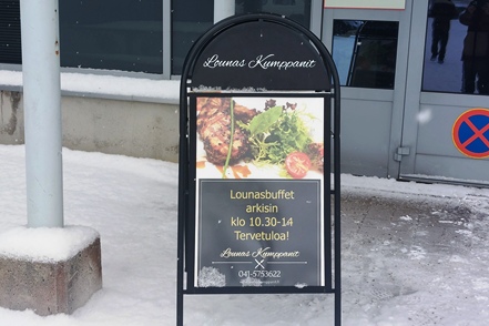 Für uns heißt das warten. Für Getränke ist im Warteraum gesorgt, wir hoffen, dass das Motto von Raskone (Mit Leidenschaft und Können) zutrifft. Mittags lädt man uns, da wir uns ja nicht im MAN verpflegen können, zum Lunch Buffet in die nahegelegene Lounas Kumppanit ein. Eine nette Geste!