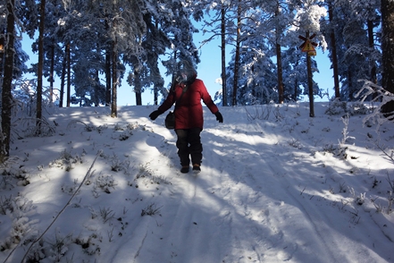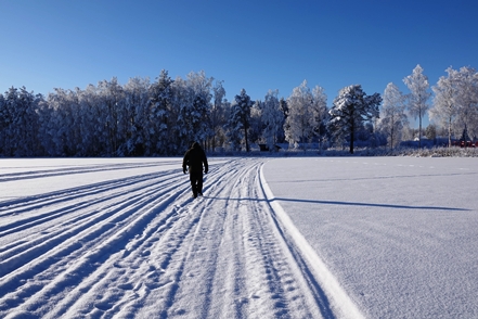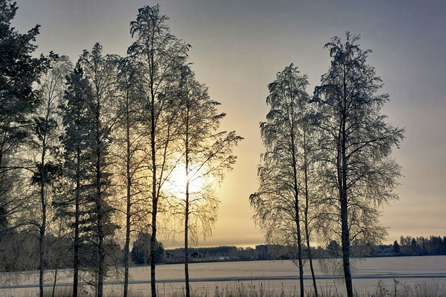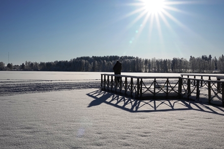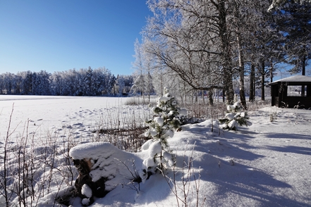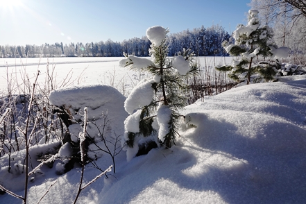 Abends sinkt die Temperatur, morgens haben wir minus 25 Grad, tagsüber steigt das Thermometer auf minus 17. Das Wetter ist klar, Christine geht es langsam ein wenig besser, so dass wir beschließen eine weitere Nacht hier zu bleiben und einen Spaziergang zu unternehmen. Auch hier begeistert die schöne Landschaft. Abends dann ein Saunagang, dies allerdings nur für Christine, denn Peter hat sich entgegen aller Hoffnung nun anscheinend doch angesteckt. Das nächste Problem ist da.