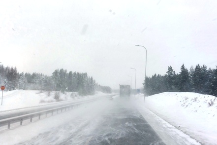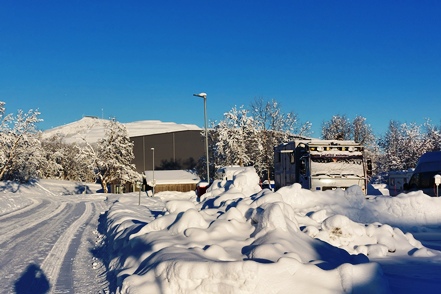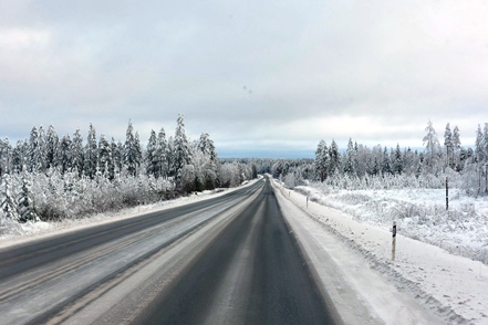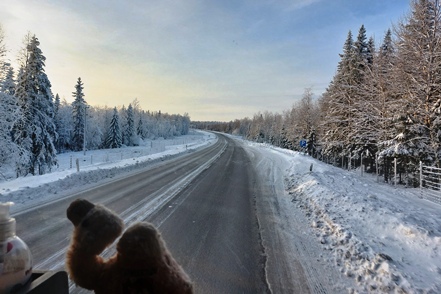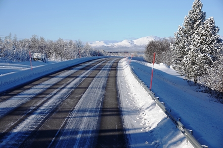 Nachdem nun die technischen Probleme hoffentlich beseitigt sind verlassen wir nach einem ausgiebigen Frühstücksbuffet den guten Stellplatz und fahren auf der E75 nordwärts. Wir sind vorsichtig optimistisch, da der MAN gut angesprungen ist und problemlos läuft. Allerdings sind die Straßen ziemlich glatt, so dass wir vorsichtig fahren.