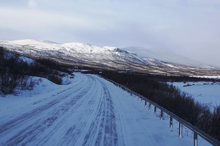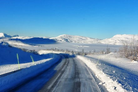Es ist noch kälter geworden, weiter geht es Richtung Gällivare. Wie bereits in Finnland regelmäßige Radarkästen am Straßenrand. Wiederholt muss Peter die Befestigung des Auspuffrohrs nachziehen.
