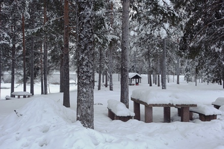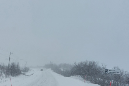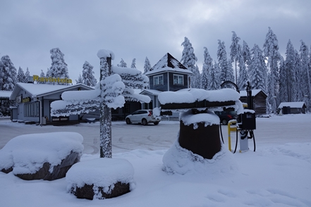 Die Rastplätze sind tief verschneit, meist nicht geräumt, so dass freies Übernachten schwierig ist. So steuern wir den hervorragend ausgestatteten Camping in Gällivare an, wo wir eine ruhige Nacht verbringen.
