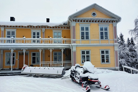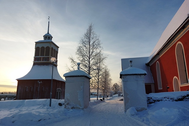 Nach einem letzten Einkauf passieren wir die Grenze nach Schweden. Die Temperaturen sinken, so dass die Straßen nicht mehr ganz so rutschig sind. Bei Kalix schauen wir uns kurz die schöne Kirche an, bevor wir auf dem Stellplatz des Filipsborg Mansion in schöner Umgebung übernachten. Hier sind zwei Stellplätze geräumt, vor Ort ist niemand. Der Check-in erfolgt im Internet, nach Zahlung erhält man den Zugangscode für die Einrichtungen per Mail. Das klappt hervorragend. Eigentlich würden wir hier optimal für Nordlichtbeobachtung stehen, da wenig Fremdlicht und freie Sicht, aber es ist total bewölkt. Keine Chance.