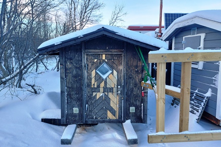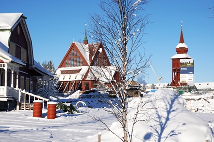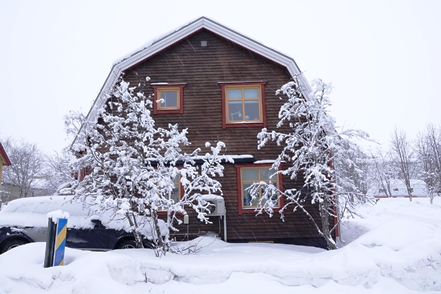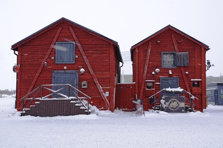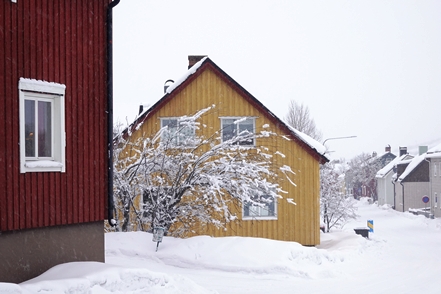 In Kiruna machen wir vom recht ordentlichen Stadtcamping einen Spaziergang und schauen uns alte Holzhäuser an. Leider fängt es wieder an zu schneien und es bläst ein ekelhafter Wind. Also schnell zurück ins warme Zuhause.