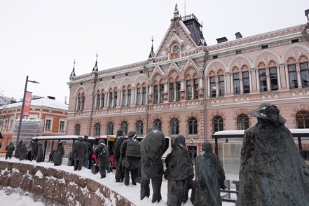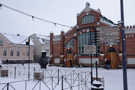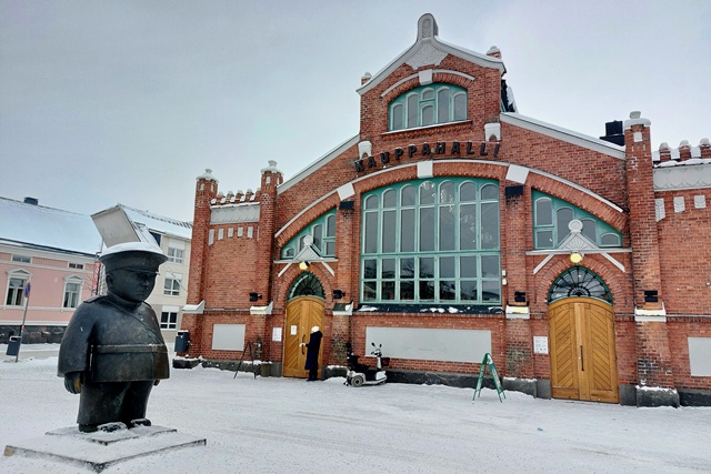 Nach einer Übernachtung erreichen wir dann am nächsten Morgen recht früh Oulo, die Kulturhauptstadt des Jahres 2026. Hier macht Christine sich alleine auf einen Rundgang, Peter bleibt besser im warmen Fahrzeug und ruht sich aus. Zuerst geht es natürlich zur Markthalle, die sich als deutlich kleiner als erwartet herausstellt.