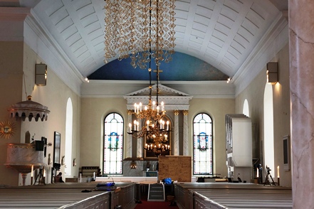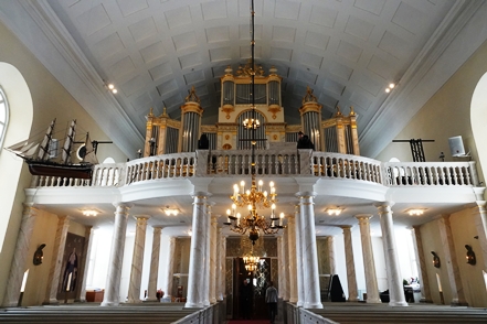 Vorbei an netten Holzhäusern führt der Weg Richtung Domkirche, die schon aus größerer Entfernung sichtbar ist. Ursprünglich im 18. Jahrhundert erbaut wurde sie nach einem Brand, der große Teile der Holzkonstruktion zerstörte, zu Beginn des 19. Jahrhunderts wieder aufgebaut.