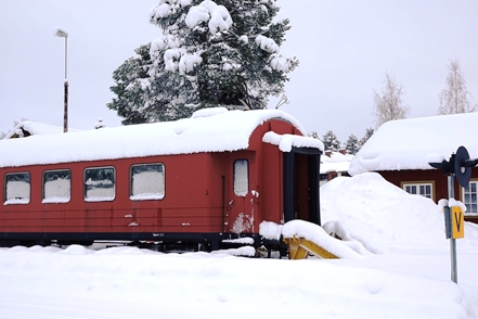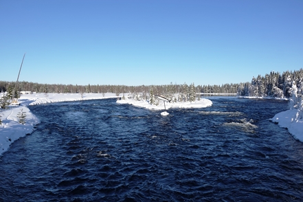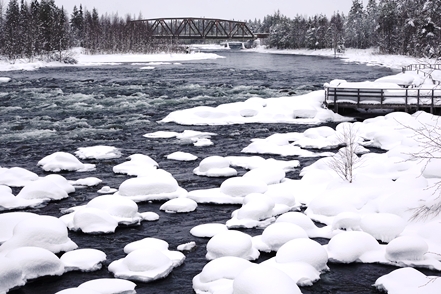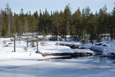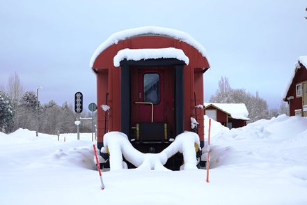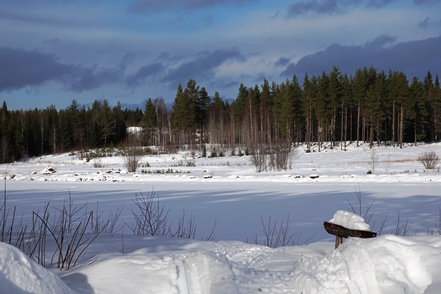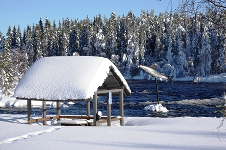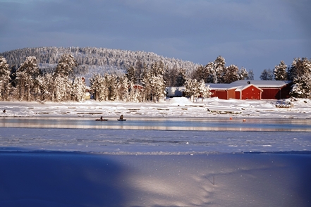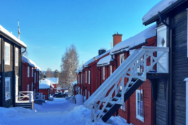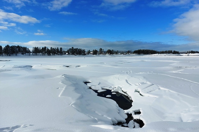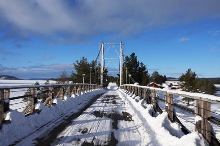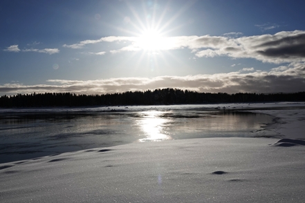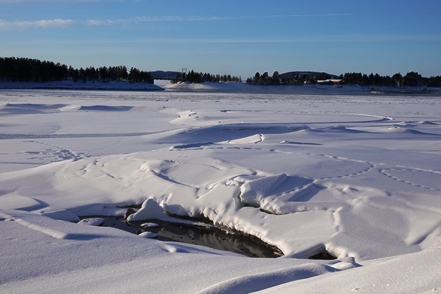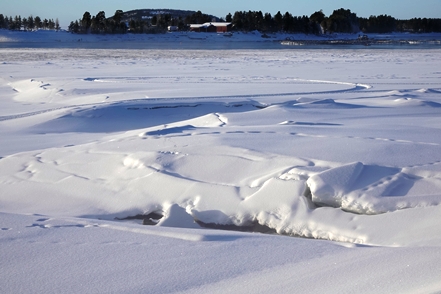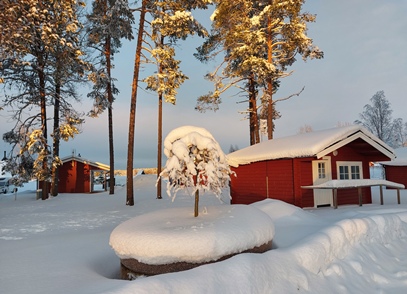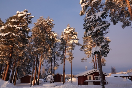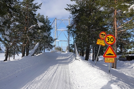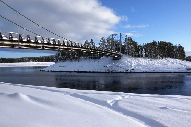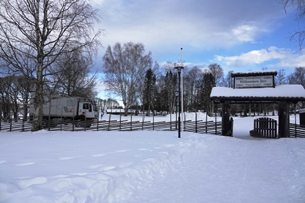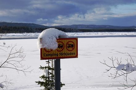Eigentlich wollen wir frei übernachten, aber angesichts der Schneemengen keine Chance. Auch der ausgeguckte Rastplatz am Skellefteälv ist nicht richtig zugänglich. Direkt an der Straße könnte man stehen, aber so viele Fahrzeuge wie hier in einer Viertelstunde haben wir heute den ganzen Tag über nicht gesehen. Das ist uns viel zu unruhig. So bleibt uns nur ein kurzer Blick auf den schön anzusehenden Fluss, danach geht es auf einen nahegelegenen Campingplatz, der auch im Winter geöffnet ist. Hier sind nur wenige Plätze geräumt, aber es ist auch kaum Betrieb. Wir checken online ein und verbringen eine ruhige Nacht.