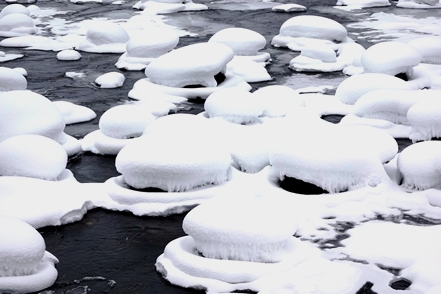 So langsam werden die Straßen freier, es regnet sogar kurz einmal. Auch heute finden wir wieder einen guten Platz an einem zugefrorenen Fluss. Viele Tierspuren entdecken wir im Schnee, sehen allerdings nur ein paar Rehe in der Ferne.