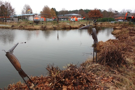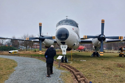 Schlechtes Wetter ist ja immer gut für einen Museumsbesuch. Und der, den wir nun vorhaben, ist ein ganz besonderer, darf man doch nach Anmeldung auf dem Gelände inmitten der Exponate im Außengelände mit dem Wohnmobil übernachten. Das Deutsche Luftschiff- und Marinefliegermuseum (Aeronauticum) ist unser Ziel. Wir melden uns an der Kasse, erhalten Informationsmaterial und einen Schlüssel für das Außentor, das natürlich nach der Öffnungszeit verschlossen ist und werden zu unserem Stellplatz gebracht. Wahnsinn – wir sind begeistert, stehen wir doch tatsächlich nah an Flugzeugen, Helikoptern und anderem Gerät. Und, was wir kaum erwartet haben, wir sind alleine hier.