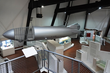 Wir schauen uns ausgiebig in den Ausstellungshallen um, interessante Exponate sind zu sehen. Der größte Raum widmet sich beispielsweise der Geschichte der Luftschifffahrt, den Zeppelinen.
