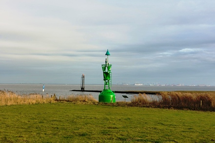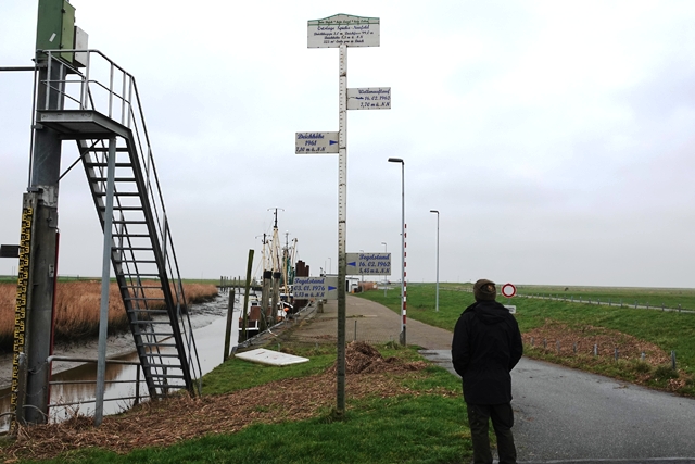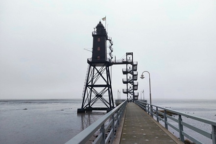 Nicht weit entfernt befindet sich ein weiterer Kutterhafen bei Dorumer-Neufeld. Aber die Attraktion hier ist das Leuchtturmdenkmal Obereversand. Der eigentliche Turm ist zwar geschlossen, aber bis auf die Plattform vor dem Eingang kann man hinaufsteigen. Bei dem starken und kalten Wind leider kein Vergnügen!