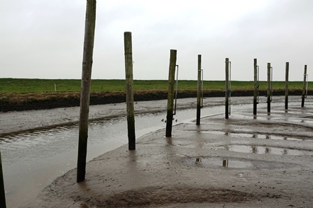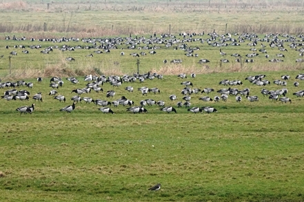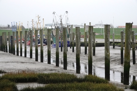 Der Nebel ist tatsächlich verschwunden, trüb ist es leider nach wie vor. Wir wandern die Küste entlang zum Kutterhafen Spieka. In der Ferne riesige Schwärme von Gänsen, ab und an mal ein Reiher. Aber die Fotobedingungen sind nach wie vor schlecht.